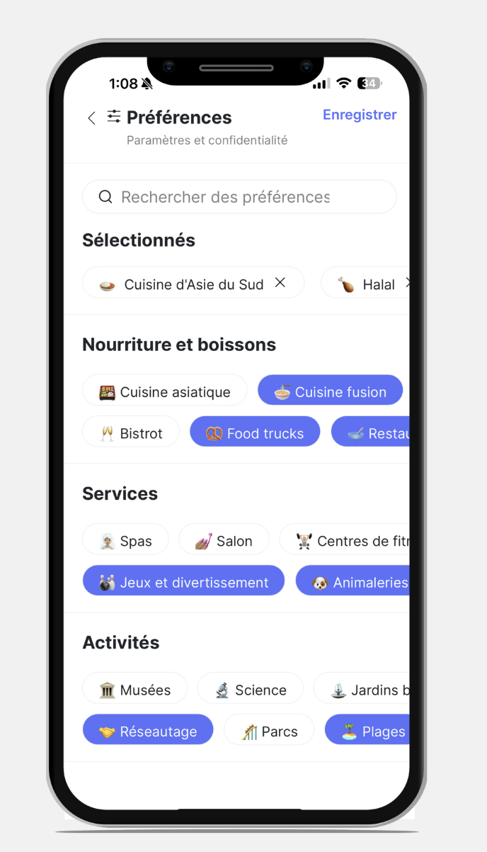 Les préférences des utilisateurs sont utilisées pour leur montrer des résultats personnalisés correspondant à leurs besoins et envies sur toute la plateforme Loop, y compris Communauté, Dépliant Loop, et Carte locale. Les utilisateurs peuvent mettre à jour leurs préférences dans Compte (Paramètres et Confidentialité) à tout moment.